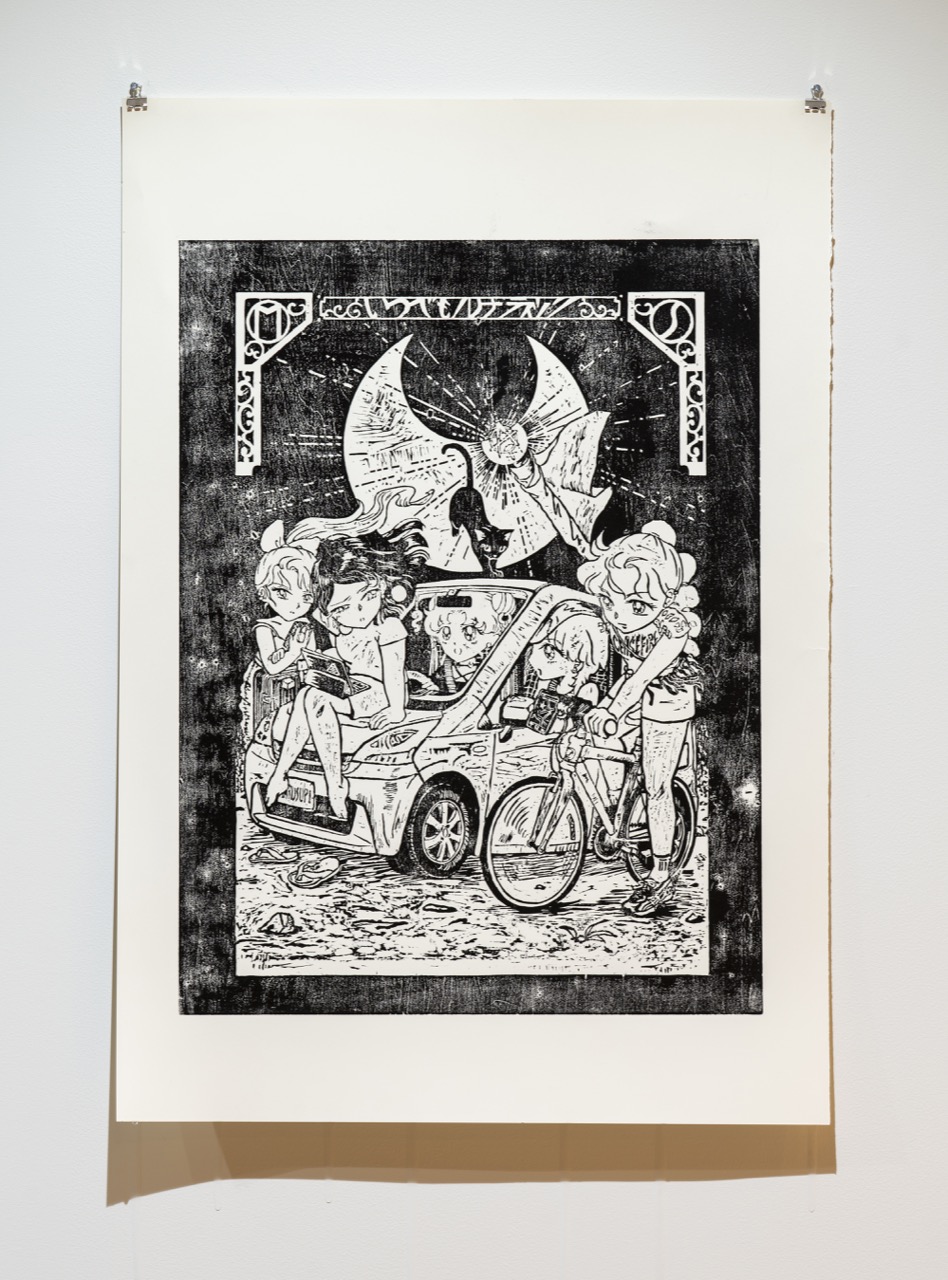This woodcut print was created for the cover image of Multiple Spirits vol. 4 and the related exhibition “Any time Lunatic - Family Abolition."