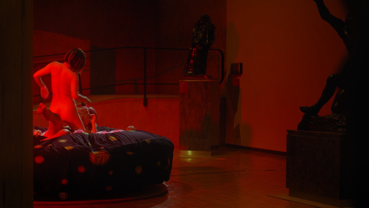This dance performance was inspired by Edvard Munch’s Alpha and Omega, a series of prints held in the collection of the National Museum of Western Art, Tokyo. In Munch’s idiosyncratic Genesis narrative, monogamous heterosexuality collapses, giving rise to a flourishing of diverse and intimate interspecies relationships. Building on this vision, Endo developed choreography in collaboration with odoriko (dancer) Natsu Usami. A rotating stage—an iconic feature of Japanese striptease theaters—was installed in the museum, transforming the space into a responsive environment activated by bodily movement. Designed by Le Corbusier, the National Museum of Western Art was originally conceived as a multidisciplinary arts center that included an experimental theater. By staging a striptease performance—historically linked to Western art—within this museum, Endo interrogates the ideological frameworks and exclusions embedded in institutional exhibition spaces.